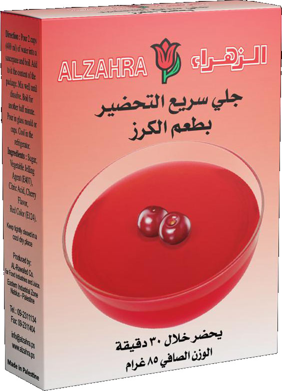 طريقة التحضير: اسكبي كوبان (400 مللتر) من الماء في وعاء التسخين وضعيه على النار حتى يغلي. أضيفي اليه محتويات المغلف. حريكي المزيج جيدا حتى يذوب تماما. اسكبيه في أطباق زجاجية وضعيه في الثلاجة حتى يبرد. كما يمكن استعمال الجلي في تحضير جميع أطباق الحلويات.