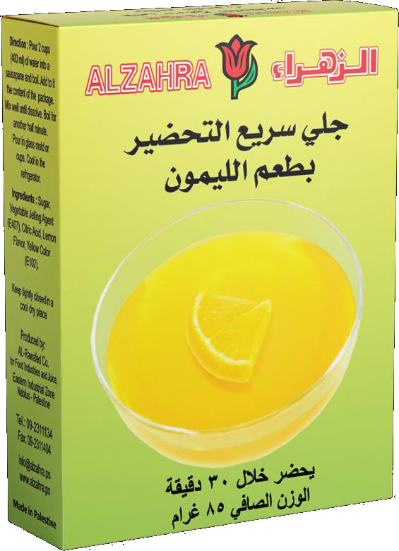 طريقة التحضير: اسكبي كوبان (400 مللتر) من الماء في وعاء التسخين وضعيه على النار حتى يغلي. أضيفي اليه محتويات المغلف. حريكي المزيج جيدا حتى يذوب تماما. اسكبيه في أطباق زجاجية وضعيه في الثلاجة حتى يبرد. كما يمكن استعمال الجلي في تحضير جميع أطباق الحلويات.